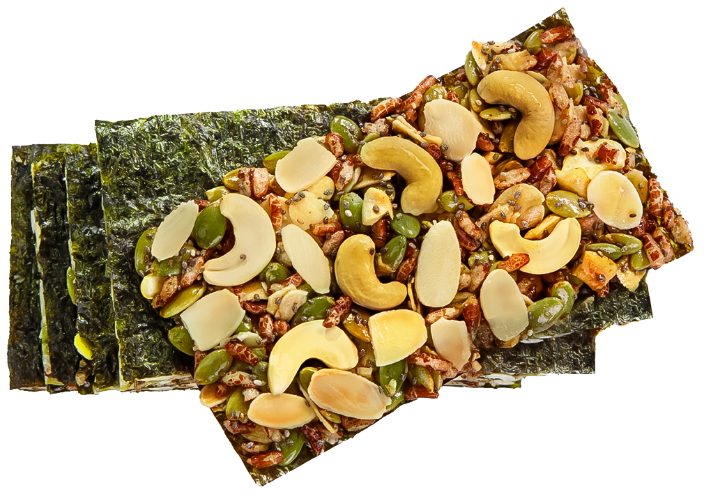 Odeha’s ingredients are crafted from nature’s harvest — chosen with care to create harmony between flavor, texture, and balance. Korean dried seaweed offers a naturally briny, mineral-rich taste. Cashews and slivered almonds add buttery crunch and plant-based energy. Pumpkin seeds and chia seeds bring subtle nuttiness and wholesome depth. Brown rice grains add a warm, satisfying crisp, while sesame oil ties everything together with a fragrant, toasty finish. Nothing artificial, nothing heavy — just real ingredients, from field to flavor.